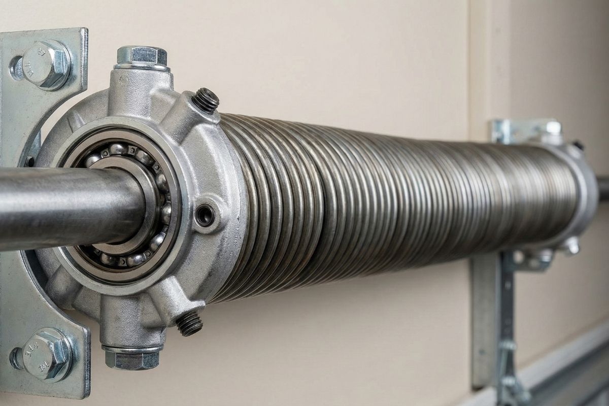 Torsion springs are mounted above the garage door and twist to create torque that lifts the door. They’re known for durability, smoother operation, and improved balance.